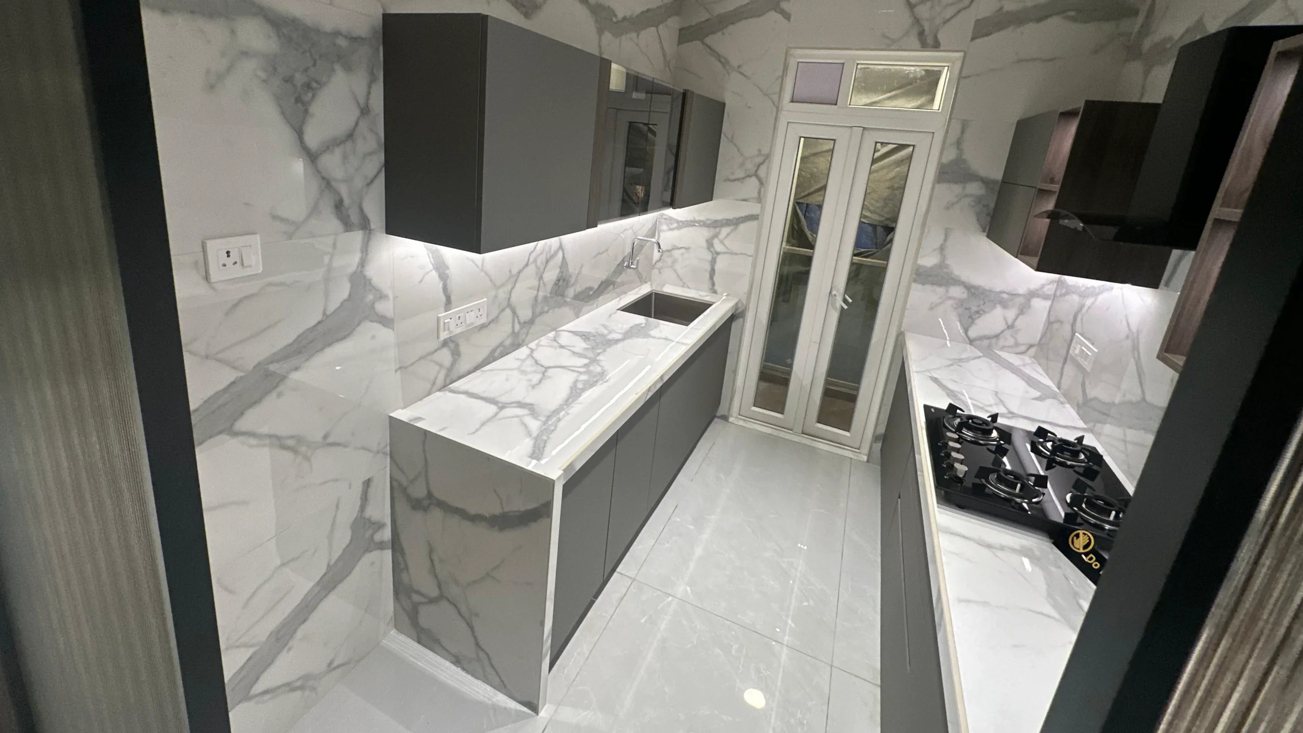 - Bathrooms: Two elegant spaces (approx. 5×8 ft and 5×6 ft) with rough textured ceramic tiles, premium sanitary fittings, and provisions for instant geysers and exhaust fans.